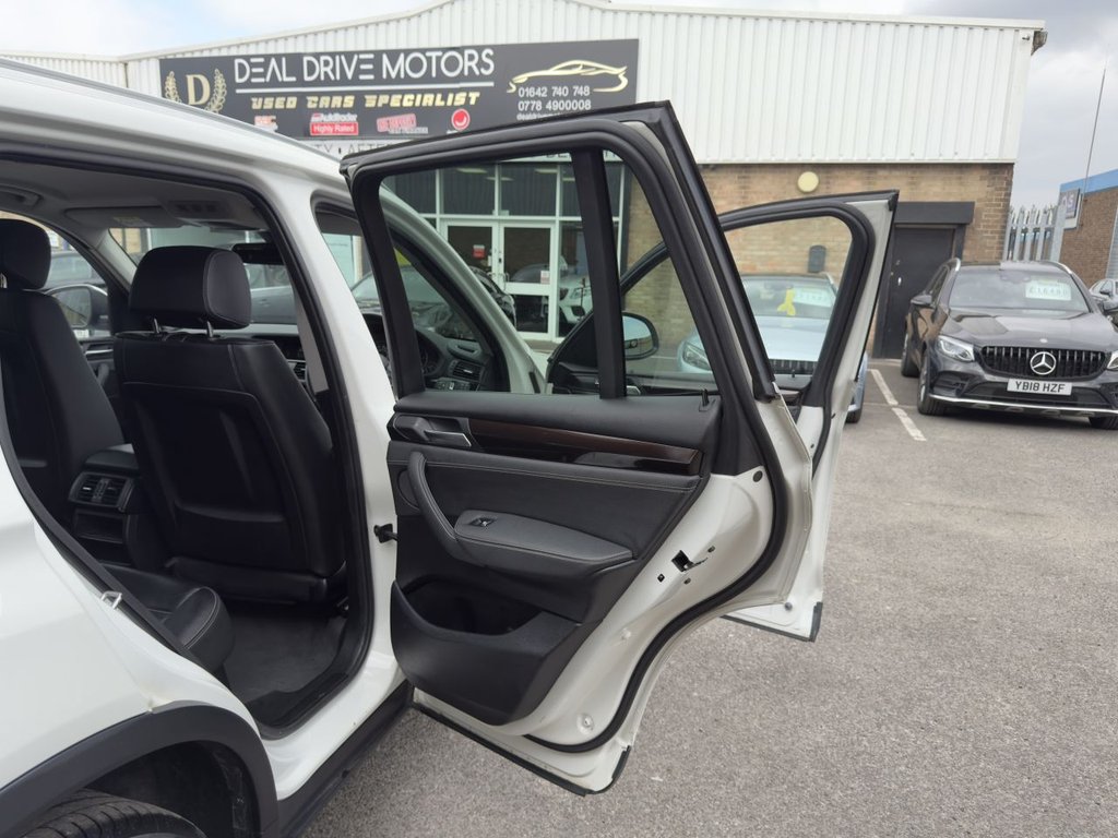 2016 BMW X3 3.0 30d xLine Auto xDrive – 258 PS Available now at DealDrive Motors. The BMW X3 30d xLine delivers premium SUV comfort with the power of BMW's legendary six-cylinder diesel engine. Its refined styling, high driving position, and advanced features make it an excellent choice for both everyday driving and long-distance journeys. Powered by a 3.0-litre diesel engine producing 258 PS, it provides effortless acceleration and smooth power delivery. The automatic gearbox paired with BMW's xDrive all-wheel-drive system ensures excellent grip and confidence in all weather. Euro 6 compliance makes it ULEZ-friendly and efficient for city and motorway use. Inside, the xLine trim offers a luxurious cabin finished in quality leather. Features include heated front seats, satellite navigation, Bluetooth connectivity, DAB radio, and dual-zone climate control. The spacious interior and versatile boot make it practical for family life and leisure trips. Everyday convenience is enhanced with front and rear parking sensors, cruise control, and an electric tailgate. Striking alloy wheels and LED daytime running lights add to its road presence. Presented in excellent condition and HPI clear for peace of mind, this BMW X3 30d xLine combines power, luxury, and everyday usability in a premium SUV package.