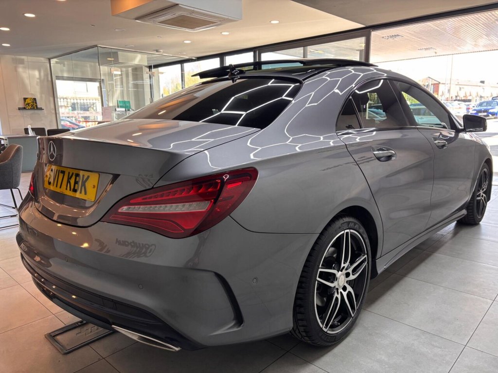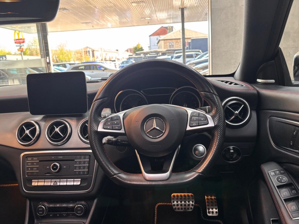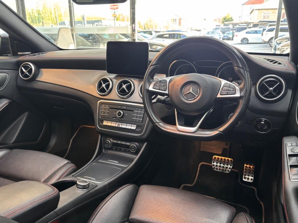 Experience the sleek design and dynamic performance of the 2017 Mercedes-Benz CLA220d AMG Line. This car, with its AMG Line trim, boasts a responsive 2.1L diesel engine, offering a blend of power and efficiency. Equipped with Parking Pilot, including front and rear sensors, parking becomes effortless. Enjoy a comfortable cabin environment with THERMOTRONIC luxury automatic climate control, featuring two-zone climate control. The LED high-performance headlamps, complete with integrated LED daytime running lights and automatic activation, ensure excellent visibility. Stay connected on the move with the Bluetooth interface, offering HD voice-capable hands-free function and audio streaming. This particular model has very low mileage, with only 38,200 miles on the clock. This CLA220d AMG Line stands out with its impressive fuel economy, achieving up to 69 mpg, meaning fewer trips to the petrol station and more money in your pocket. In addition to its fuel efficiency, this vehicle boasts low CO2 emissions, making it a more environmentally conscious choice compared to similar vehicles.